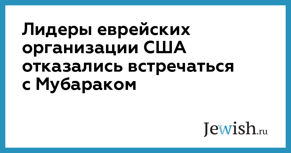 Руководители ряда еврейских организаций США бойкотировали встречу президента Египта Мубарака с главами американской еврейской общины в связи с тем, что на встречу не был приглашен председатель Антидиффамационной Лиги Абрахам Фоксман, сообщает радиостанция "Седьмой канал". Среди отказавшихся прибыть на встречу были председатель ассоциации глав еврейских организаций, председатель «Бней брит» и руководитель еврейского лобби AIPAC. Как предполагают в еврейских кругах США, Фоксман не был приглашен на встречу с президентом Египта в связи с критикой, которой неоднократно подвергал египетские СМИ за развернутую ими антиизраильскую и антисемитскую пропаганду.