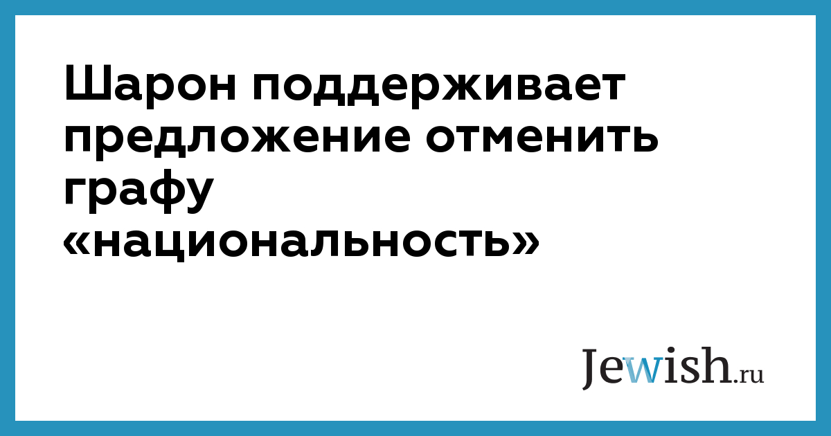 Премьер-министр Израиля Шарон поддержал предложение министра внутренних дел Эли Ишая отменить графу «национальность» в израильском удостоверении личности, сообщает радиостанция "Седьмой канал". Как уже сообщалось, данное предложение руководитель МВД внес в качестве временной альтернативы решению Верховного суда страны, обязывающего регистрировать евреями лиц, прошедших «реформистский» или «консервативный» гиюры. Данное предложение поддержали фракции партий ШАС и «Еврейство Торы», а также председатель Кнессета Авраам Бург. Против выступила фракция Национально-религиозной партии (МАФДАЛ).