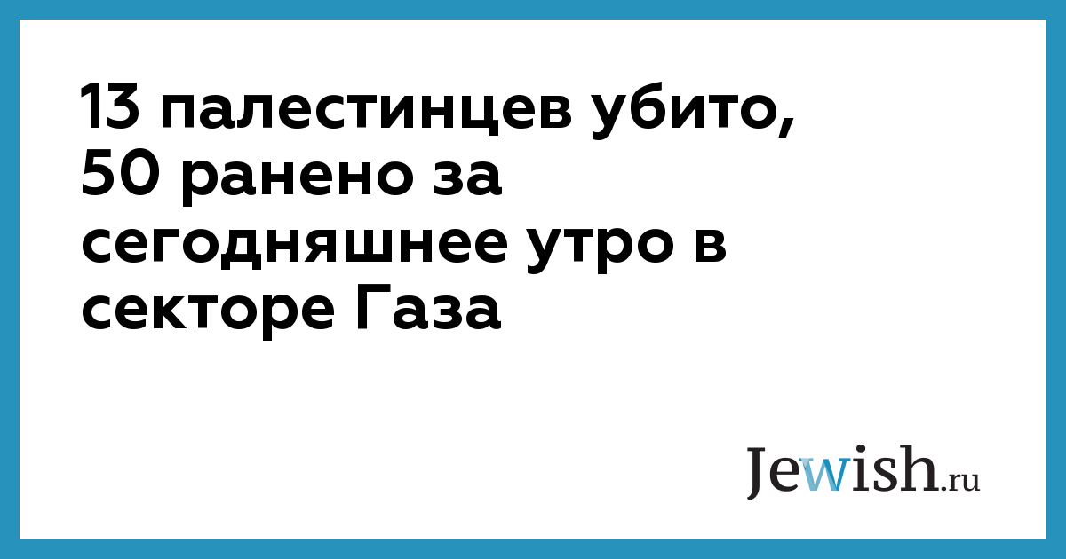 13 палестинцев убито, 50 ранено за сегодняшнее утро в секторе Газа