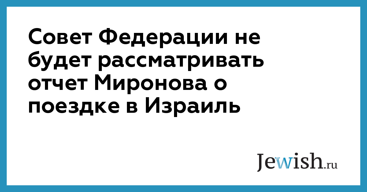 На заседании Верхней палаты российского парламента в среду пока не предполагается обсуждение поездки спикера СФ Сергея Миронова в Израиль. Об этом сообщил парламентским журналистам первый вице-спикер Верхней палаты Валерий Горегляд по окончании во вторник заседания Совета палаты. Он также отметил, что этот вопрос не поднимался и на сегодняшнем заседании. В тоже время Горегляд отметил, что если глава Верхней палаты выступит на завтрашнем заседании с инициативой обсуждения своей поездки, то Совет Федерации рассмотрит это предложение. Горегляд не стал комментировать отказ Сергея Миронова встретится с главой Палестинской автономии Ясиром Арафатом. Первый вице-спикер полагает, что "у председателя были объективные обстоятельства, из-за которых он принял это решение".