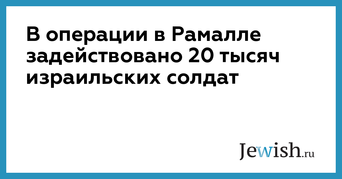 Более 20 тыс. израильских военнослужащих при поддержке 150 танков и бронетранспортеров участвуют в продолжающейся второй день военной акции в городе Рамалла (Западный берег реки Иордан). Речь идет о крупнейшей армейской операции еврейского государства против палестинцев за последние двадцать лет со времен израильского вторжения в Ливан. За сегодняшний день убито, как минимум, пять палестинцев, пал жертвой израильтян и фоторепортер из Италии. Израильтяне, фактически контролирующие Рамаллу, перекрыли танками доступ к городской больнице, куда свозили раненых. Представитель министерства здравоохранения палестинской автономии заявил сегодня телеканалу "Аль-Джазира", что подобными действиями Израиль "подписал пострадавшим смертный приговор". Палестинские врачи стараются оказать помощь прямо на улицах, однако характер ранений многих требует их немедленной доставки в стационар.