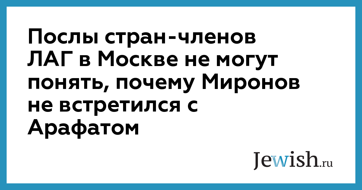 Они пояснили, что целью встречи дипломатов будет "обсуждение ситуации, сложившейся в связи с отказом спикера Совета Федерации РФ Сергея Миронова от встречи с председателем Палестинской национальной администрации Ясиром Арафатом". В российской столице аккредитованы послы 20 стран-членов ЛАГ, а также действует дипломатическая миссия лиги. Как заявили источники, "с учетом всем известной природы палестино-израильского конфликта, связанной с невыполнением Тель- Авивом справедливых требований международного сообщества, заявления в Израиле С.Миронова, являющегося третьим по рангу в России государственным чиновником, касаются всего арабского мира". Страны ЛАГ "высоко ценят отношения с Россией и характеризуют их как особые с учетом давних традиций дружественных связей и российского коспонсорства в мирном процессе на Ближнем Востоке", — подчеркнули собеседники агентства. По их словам, арабский мир "хотел бы активизации роли Москвы в регионе с целью установления всеобъемлющего и справедливого мира". В ходе визита на этой неделе в Израиль С.Миронов отложил запланированную ранее встречу с Я.Арафатом, мотивировав это необходимостью более глубокого изучения позиций израильской стороны в отношении ближневосточного конфликта. При этом спикер Совета Федерации выразил надежду, что сможет встретиться с Я.Арафатом в ближайшем будущем.