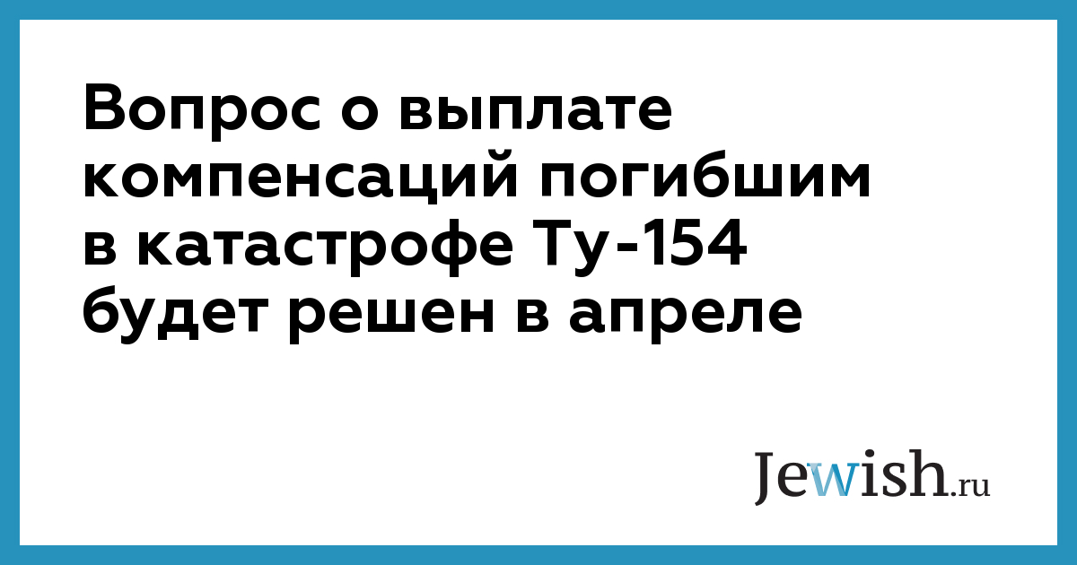 Следующий раунд переговоров между Украиной и Израилем по определению размера компенсации семьям погибших при катастрофе самолета Ту-154 пройдет не ранее апреля текущего года. Об этом заявила израильский посол в Киеве Анна Азари. По ее словам, переговоры состоятся после того, как на Украине завершатся парламентские выборы, а в Израиле — еврейская Пасха. Посол Израиля в Киеве Анна Азари выразила надежду, что вопрос компенсации решится как можно быстрее. Однако, суммы возможных компенсаций еще не обсуждались, так как до этого следует согласовать огромное количество юридических моментов. Катастрофа пассажирского самолета Ту-154 российской авиакомпании "Сибирь" над Черным морем произошла 4 октября 2001 года в результате попадания в него украинской ракеты С-200, выпущенной в ходе учений украинских ПВО в Крыму. В результате катастрофы погибли 78 человек — 66 пассажиров большинство — граждане Израиля) и 12 членов экипажа.