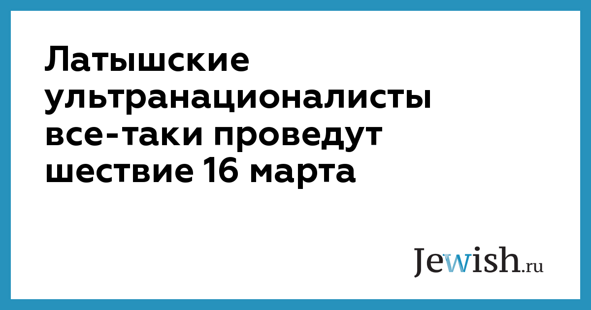 16 марта, в день памяти латышских легионеров "Ваффен СС", запрещенное рижской думой шествие от станции Торнякалнс до памятника Свободы, возможно, все-таки состоится. Об этом свидетельствуют заявления организаций Visu Latvijai! и "Клуб 415". В распространенном сегодня объединением Visu Latvijai заявлении сообщается о намерении обеспечить безопасность руководителя организации Райвиса Дзинтарса, когда он от станции Торнякланс направится к памятнику Свободы, чтобы возложить цветы. Безопасность своего "вождя" будут обеспечивать 50 человек. "В случае, если кто-либо будет угрожать безопасности Дзинтарса, мы оставляем за собой все возможности защитить руководителя объединения", — предупреждают авторы заявления. Руководитель организации "Клуб 415" Янис Силс также заявил, что намерен пройти по маршруту заявленного ранее шествия, и если кто-то хочет к нему присоединиться, это не возбраняется.