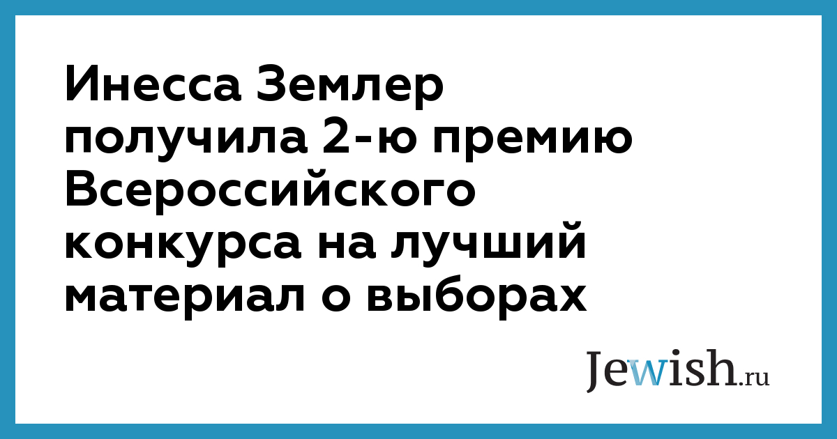 Инесса Землер получила 2-ю премию Всероссийского конкурса на лучший материал о выборах