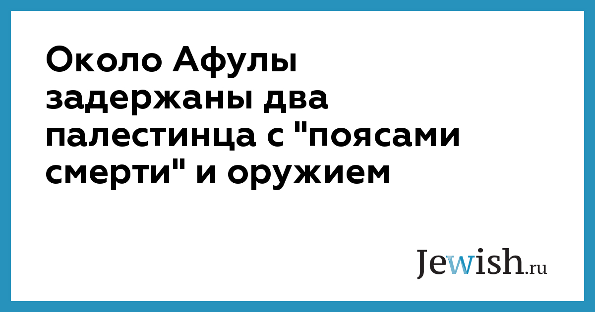 Израильским силам безопасности удалось предотвратить очередной крупный теракт. В Самарии возле поселения Таанахим, что в 3 км к югу от города Афула, перехвачены два палестинца, имевших при себе "пояса смерти", гранаты и автоматическое оружие. Очевидно, что они шли на задание и были близки к цели. Израильская полиция и армейские подразделения в настоящее время прочесывают местность в поисках возможных сообщников террористов.