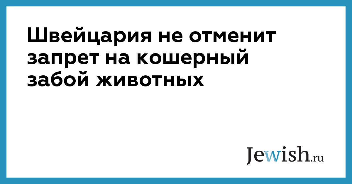 Швейцарские власти не пойдут на отмену закона, запрещающего кошерный забой животных. Правительство страны приняло такое решение после консультаций с представителями еврейской общины страны, невзирая на настойчивые просьбы последних. Представители швейцарского правительства, впрочем, заверили лидеров еврейской общины, что продолжение импорта кошерных мясопродуктов будет гарантировано. Источники, близкие к правительству, пояснили, что такое решение властей обусловлено опасениями того, что в противном случае в стране могут активизироваться антисемитские настроения. Альфред Донат, один из видных активистов еврейской общины Швейцарии, назвал решение властей дискриминационным и заявил, что разочарован теми, кого народ Швейцарии уполномочил принимать решения, имеющие силу закона.