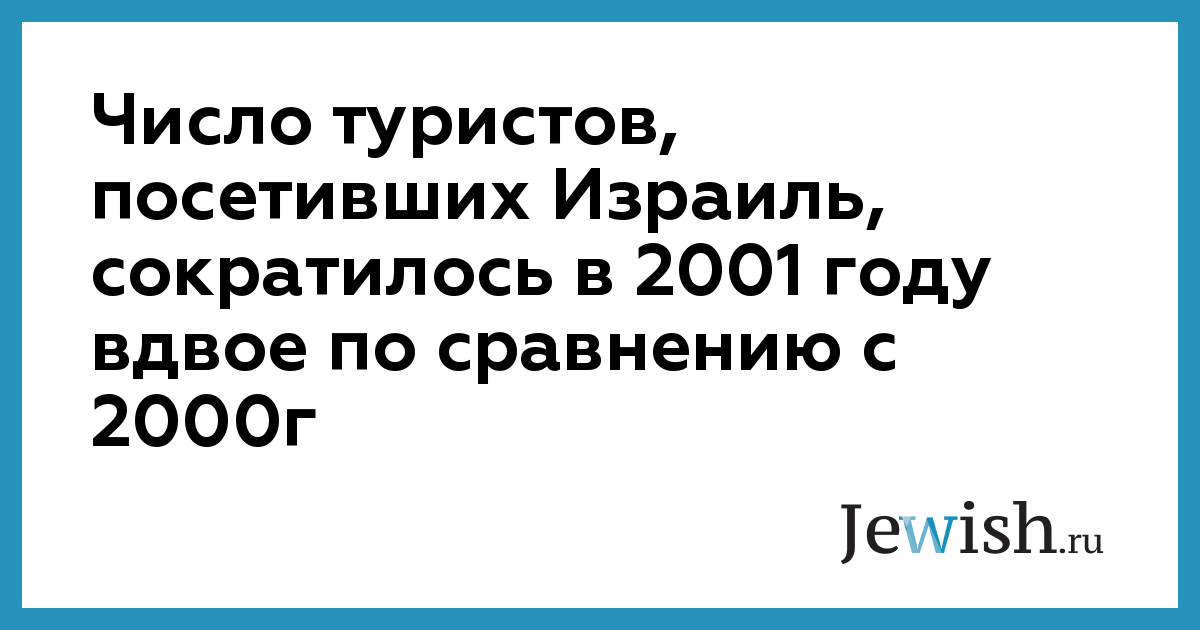 Число туристов, посетивших Израиль, сократилось в минувшем году на 50% по сравнению с показателями за 2000г. Такие данные были представлены сегодня управлением по делам туризма Израиля на Всемирном туристическом форуме (ITB), проходящем с 16 по 20 марта в Берлине. Так, в минувшем году Израиль посетили 1 млн 210 тыс. 284 туриста, тогда как в 2000г. в стране побывали 2 млн 416 тыс. 904 туриста.