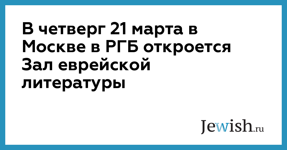 21 марта в Российской государственной библиотеке состоится торжественная презентация Зала еврейской литературы в Центре восточной литературы Российской государственной библиотеки.