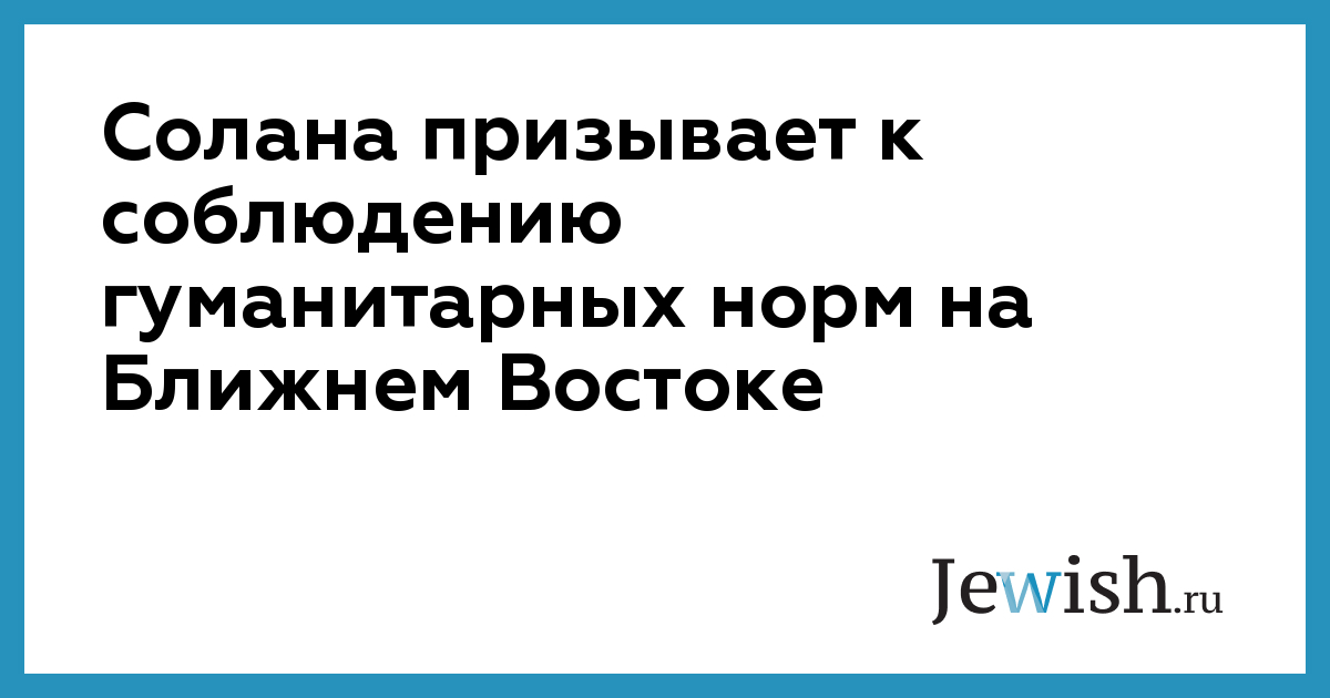 Генеральный секретарь Совета Европейского союза, Верховный представитель ЕС по внешней политике и безопасности Хавьер Солана призывает к незамедлительному обеспечению норм гуманитарного права на Ближнем Востоке.