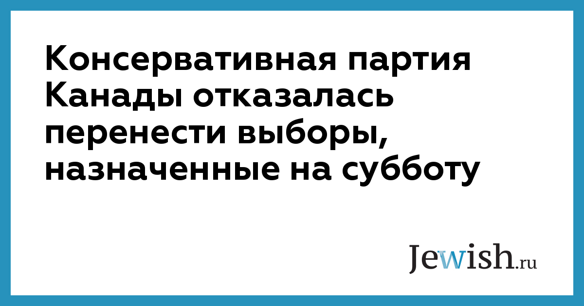 Одна из основных политических партий Канады, Консервативная, отказалась перенести на другой день дату внутрипартийных выборов, которая оказалась назначенной на субботу. Голосование в Онтарио на выборах руководящих органов партии состоится, как и было запланировано, в намеченный заранее день, несмотря на энергичные возражения, выдвинутые членами партии — евреями, а также Канадским еврейским конгрессом. Согласно регламенту партии, заочное голосование не допускается, а выразить свою волю путем делегирования своего голоса депутаты-евреи не смогут, поскольку такое действие входит в противоречие с предписанием еврейской Традиции. Таким образом, Консервативная партия поневоле проигнорирует мнение своих еврейских сторонников.