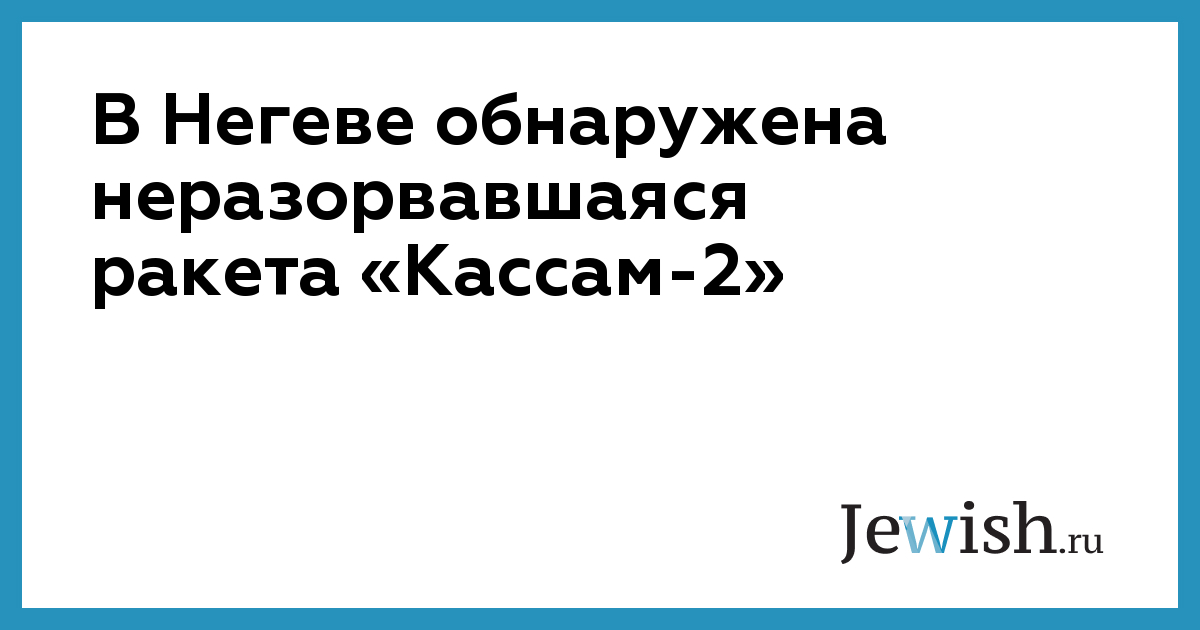 В Негеве обнаружена неразорвавшаяся ракета «Кассам-2»