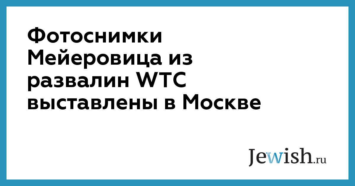 В Московском доме фотографии открылась выставка фотографа Джоэла Мейеровица под названием "После 11 сентября: снимки из эпицентра трагедии". Знаменитый фотохудожник получил разрешение снимать в руинах WTC уже через два дня после произошедшего, но при условии, что он не будет публично выставлять фото человеческих тел. В Москву привезены 27 снимков размером 1х0,7 метра. Они столь огромны, чтобы у зрителя возникло ощущение соучастия. "На моих снимках нет ничего ужасного — ни обгоревших трупов, ни человеческих останков — только разрушения, заявил Мейровиц "Известиям.Ру". — Самое сильное впечатление производит именно их грандиозный масштаб. ... Вот это поражает. Я сделал очень большие, просто огромные фотографии, мне хотелось бы создать у зрителя иллюзию, что он вступает в этот мир разрушений, находится внутри событий. Я хотел, чтобы зритель сопереживал, а не разглядывал". "Я сорок лет занимаюсь фотографией, у меня были случаи проявить свои амбиции. На этот раз мне надо было быть максимально объективным" — добавляет фотограф. Такая необычная постановка задачи связана еще и с тем, что документальные съемки, выставленные нынче в Москве — только первый этап огромного мемориального проекта, задуманного нью-йоркскими властями. Мейеровиц получил заказ снимать не только разрушения, но и восстановление. Фотоархив "11.09" в результате должен включить в себя более 5000 объектов и станет частью постоянной коллекции Городского Музея Нью-Йорка, которая будет использоваться для исследований, выставок и публикаций. Музей планирует организовать выставку этих работ и выпустить соответствующий каталог в 2004 году. Причем открыта выставка будет всего в двух кварталах от того места, где находился Центр мировой торговли. "Для меня отсутствие фотографии значит отсутствие истории," — приводятся в пресс-релизе московской выставки слова Мейеровица.