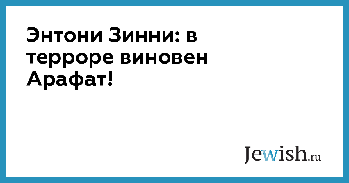 Вчера вечером специальный посланник США на Ближнем Востоке Энтони Зинни выступил с резким осуждением очередного теркакта, совершенного террористом-камиказде днем в самом центре Иерусалима, пишет MIGnews. Вину за иерусалимскую трагедию генерал Зинни целиком и полностью возложил на Арафата, указав, что лидер палестинцев не предпринял никаких шагов, чтобы не на словах, а на деле прекратить террор или задержать тех, кто ответственен за кровавые бесчинства.