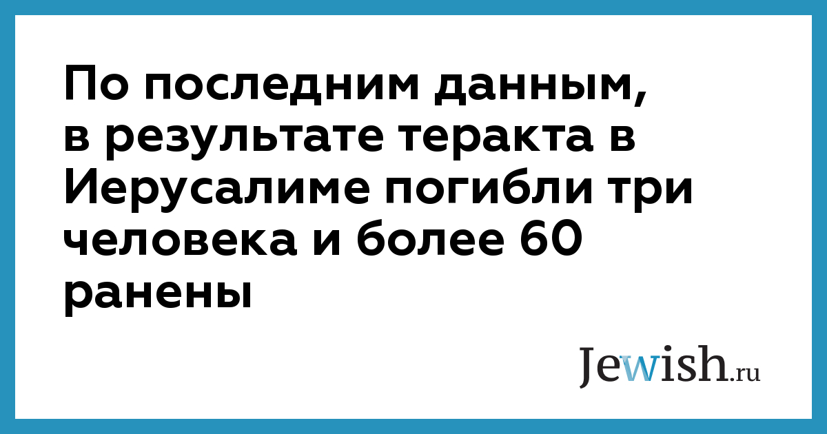 По последним данным, в результате теракта, совершенного в четверг 21 марта в Иерусалиме палестинским террористом-смертником, три человека погибли и более 60 ранены. Израиль возложил персональную ответственность за это преступление на главу Палестинской автономии Ясира Арафата, обвинив его в неспособности контролировать свои подразделения. Поздно вечером 21 марта состоялась экстренная встреча американского спецпосланника на Ближнем Востоке Энтони Зинни с премьером Ариэлем Шароном и членами израильского кабинета. В ходе переговоров обсуждались меры по спасению миротворческой миссии Э.Зини. Напомним, что встреча представителей служб безопасности Израиля и Палестинской автономии, намеченная на ночь с четверга на пятницу, была отменена по инициативе израильской стороны.