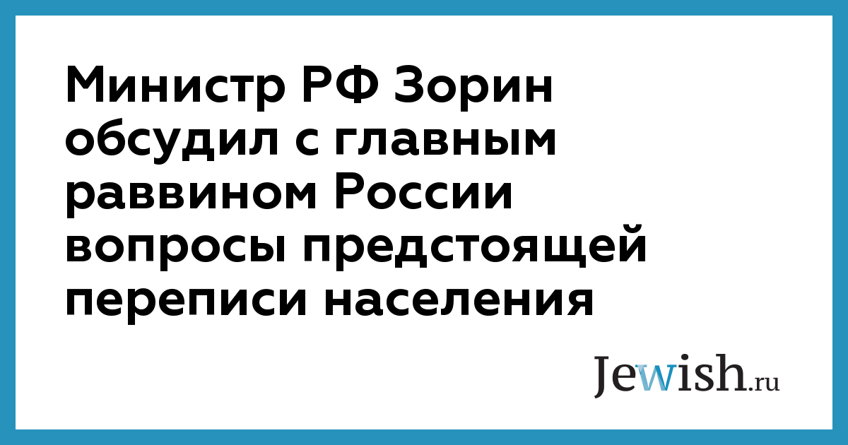 Министр РФ, курирующий национальные вопросы, Владимир Зорин и главный раввин России Берл Лазар на встрече в пятницу в Москве сошлись во мнении, что задача