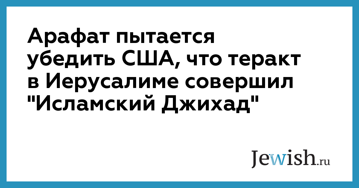 Глава палестинской национальной администрации Ясир Арафат пытается убедить США, что за терактом в Западном Иерусалиме, совершенным на этой неделе, стоит группировка "Исламский джихад", а не возглавляемое палестинским лидером движение ФАТХ.