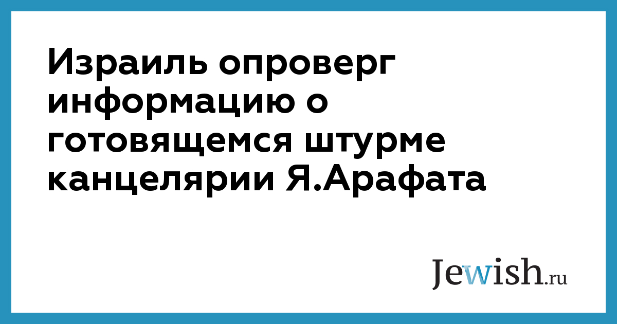 Представитель армии обороны Израиля опроверг информацию о намерении израильских сил предпринять штурм канцелярии главы палестинской автономии Ясира Арафата. По сообщению израильской государственной радиостанции, никаких ультиматумов на предмет выдачи кого-либо из лиц, причастных к терроризму, Я.Арафату предъявлено не было. По сообщению военных источников, через представителей канцелярии палестинского лидера, ему были переданы необходимые лекарства, измеритель кровяного давления, а также пищевые продукты. Кроме этого, в здании канцелярии возобновлена подача электроэнергии и воды.