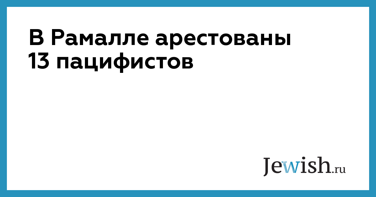 Арестованы 13 активистов миротворческих движений, посетивших накануне в Рамалле осажденного израильскими войсками Ясира Арафата. Об этом объявили представители израильских военных. 31 марта десятки активистов, размахивая белыми флагами, прошли сквозь ограждение израильских войск в резиденцию Я.Арафата, игнорируя приказы остановиться. Тем не менее, когда они вышли из здания, они были арестованы. Израильские военные заявляют, что среди пацифистов находились и разыскиваемые палестинские террористы. Арестованные затем были переданы израильской полиции. Как утверждают военные, всем задержанным будет предъявлено обвинение в нарушении режима закрытой военной зоны, которой объявлена Рамалла.