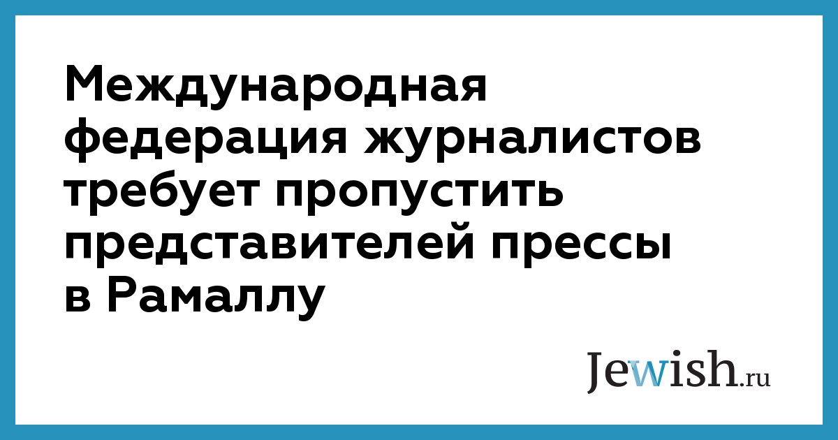 Международная федерация журналистов (IFJ) призвала в понедельник власти Израиля отменить введенный ранее бойкот на присутствие прессы в Рамалле. Как отмечается в заявлении IFJ, цензура не может способствовать мирному урегулированию палестино-израильского конфликта. Председатель IFJ Эдан Вайт также отметил, что за последние дни на Ближнем Востоке при выполнении своего профессионального долга погибли и получили ранения несколько журналистов. "Это жестокая война в которой основными жертвами являются журналисты", — заключил Э.Вайт. IRNA напоминает, что власти Израиля объявили Рамаллу и ряд других палестинских населенных пунктов закрытыми военными зонами и запретили в них деятельность журналистов.