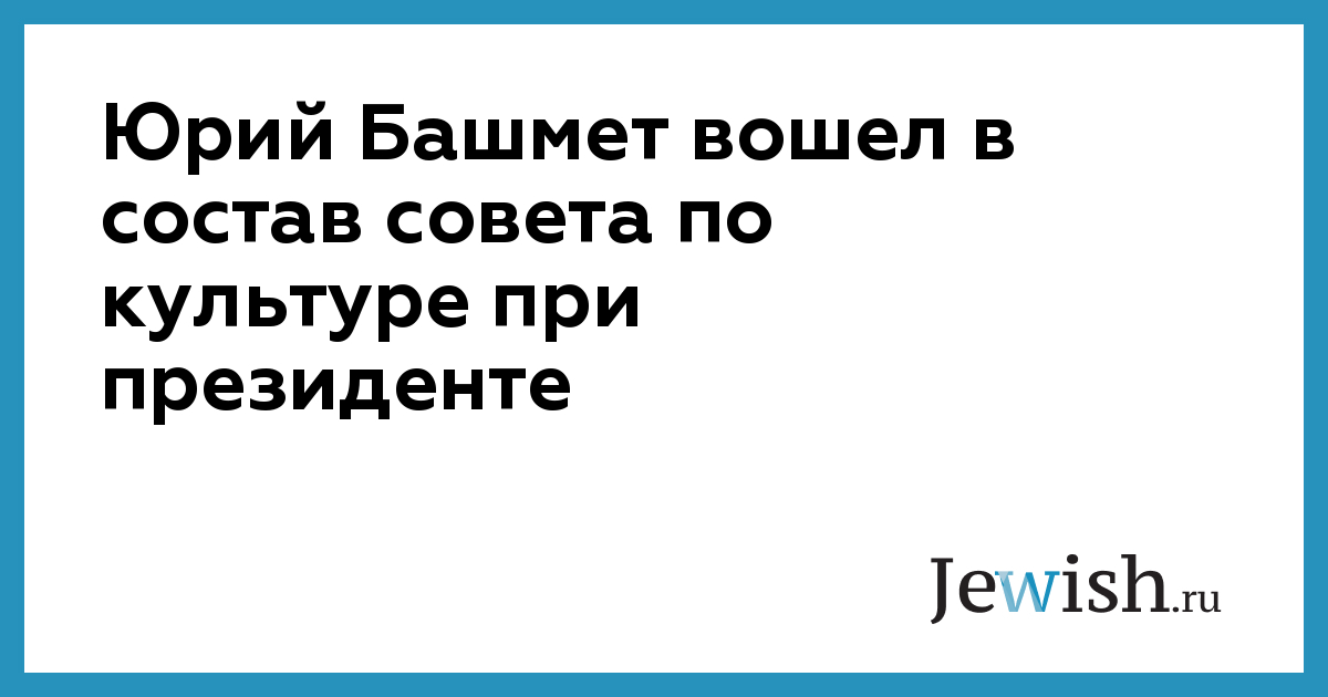 Художественный руководитель Государственного камерного оркестра "Солисты Москвы" Юрий Башмет включен в состав совета при президенте России по культуре и искусству. Как сообщили сегодня в пресс-службе главы российского государства, указ об этом подписал президент Путин.