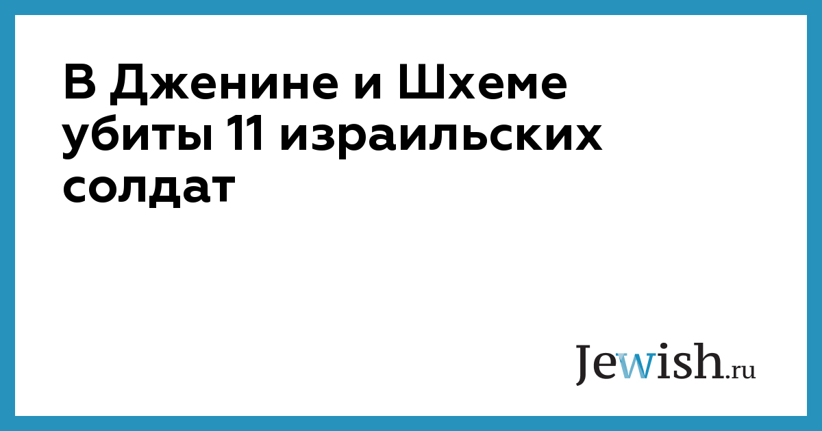 Во вторник израильские войска потеряли убитыми 11 военнослужащих, за предыдущие 11 дней военной операции были убиты 13 военных. По последним данным, по меньшей мере девять израильских военнослужащих убиты сегодня в лагере палестинских беженцев Дженин на севере Западного берега реки Иордан. Еще двое израильтян погибли в стычках с палестинцами в Шхеме. Это самые большие потери израильских войск в ходе операции израильской армии "Защитная стена". За все предыдущие 11 дней крупномасштабной военной операции Израиля на палестинских территориях погибли 13 военнослужащих. И в Дженине, и в Шхеме ведутся тяжелые бои. По словам одного из официальных представителей Израиля, операция должна была быть завершена еще в понедельник, однако пока нет никаких признаков вывода из этих городов войск, чего требуют от израильтян американцы.