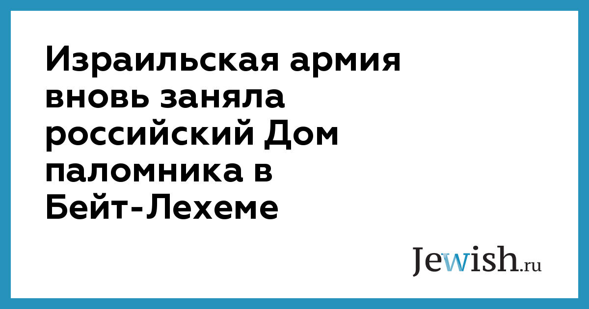 Израильские военнослужащие во второй раз за время боев около церкви Рождества в Бейт-Лехеме заняли принадлежащее Русской Православной Церкви здание Дома паломника в Бейт-Лехеме, сообщил один из представителей Русской Духовной миссии в Иерусалиме. Он не привел никаких подробностей происходящего. По неподтвержденным данным, во двор Дома паломника въехал израильский бронетранспортер. Несколько дней назад израильские военнослужащие уже использовали здание Дома паломника для организации огневой позиции. Тогда солдаты заняли помещения верхних этажей и крышу здания, а на территорию прилегающего земельного участка была введена бронетехника. Собственность РПЦ в Бейт-Лехеме освободили только после ряда заявлений со стороны МИД РФ, Московской Патриархии, а также посольства России в Израиле и Русской Духовной миссии в Иерусалиме. После вывода войск с территории Дома паломника израильская администрация пообещала возместить нанесенный ущерб. Дом паломника находится в 120 метрах от церкви Рождества, которая уже несколько дней находится в осаде. По имеющимся данным, в храме укрываются более 200 палестинцев, в основном боевики вооруженных отрядов "Танзим" и полицейские. До сих пор израильские власти утверждали, что штурма храма не планируется, поскольку все понимают его огромную ценность для христиан. Однако местные наблюдатели не исключают, что повторное появление израильских военнослужащих в Доме паломника может свидетельствовать об их стремлении снова занять удобные огневые позиции перед началом более активных действий около церкви Рождества.