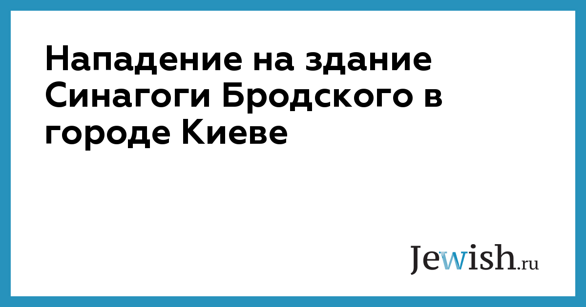 Вечером в субботу около 22.00 здание Синагоги Бродского, расположенной на улице Шота Руставели в Киеве, подверглось нападению группы неизвестных хулиганов. По описаниям очевидцев, около 50-ти агрессивно настроенных людей с криками "Бей жидов!" подошли к зданию синагоги со стороны улицы Рогнеденской и заранее заготовленными булыжниками разбили практически все стекла в синагоге. Опасности подверглись сотни людей, находившиеся в синагоге на вечерней молитве.