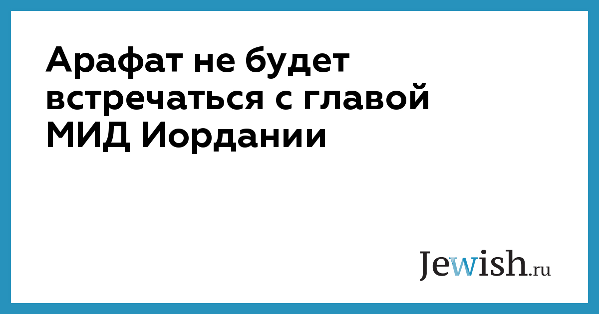 Как сообщает 17 апреля AFP, запланированная встреча между министром иностранных дел Иордании и лидером ПА Ясиром Арафатом не состоится. По словам главы департамента планирования и местного самоуправления ПА Саеба Эреката встреча не состоится потому, что правительство Израиля не дало разрешения на проведение переговоров. Представители МИД Иордании в Аммане подтвердили факт отмены встречи в запланированные сроки, однако уточнить причину, по которой это произошло, отказались.