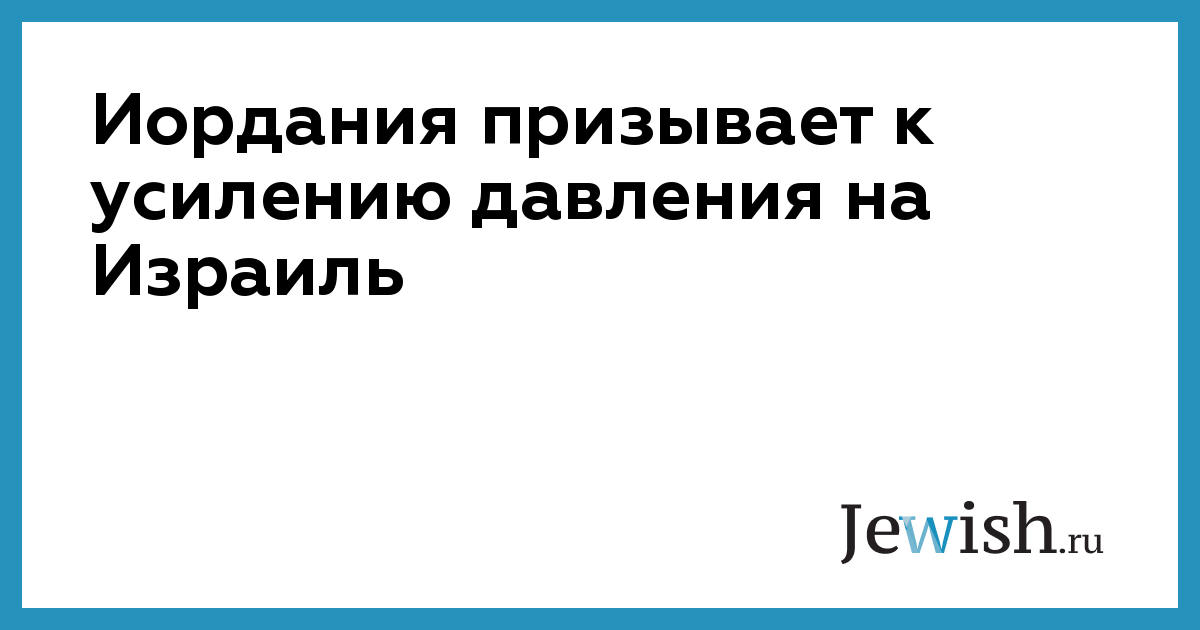 Иордания призывает к усилению давления на Израиль