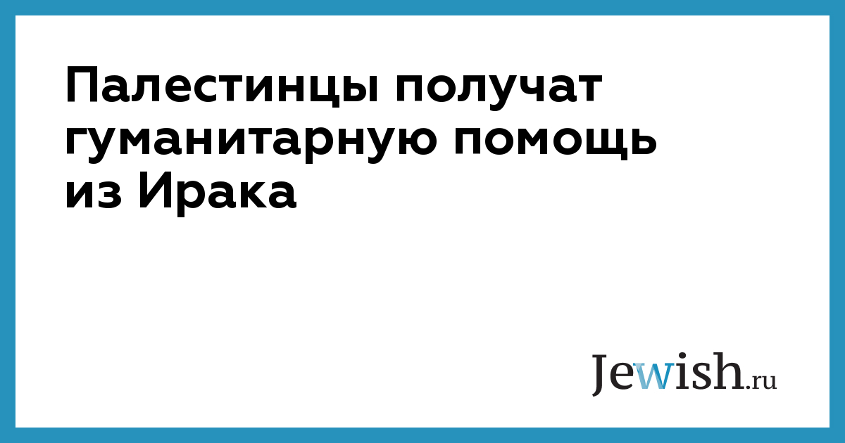 Ирак направил большой груз гуманитарной помощи для палестинцев. Об этом заявил министр торговли страны Мухаммед Махди Салех. По его словам, 26 тяжелых грузовиков отправились в четверг вечером из Багдада в Иорданию с грузом риса, муки, молока и растительного масла. Из Иордании эти продукты будут переправлены на палестинские территории. Ирак, в соответствии с указанием президента Саддама Хусейна, продолжает оказывать помощь палестинцам, защищающим свою землю и честь, а также честь всех арабов, отметил министр. С начала палестинской "интифады" восстания Ирак уже отправил на оккупированные территории сотни тонн гуманитарной помощи. На прошлой неделе Саддам Хусейн объявил о выделении 8,7 млн долларов для оказания помощи палестинцам.