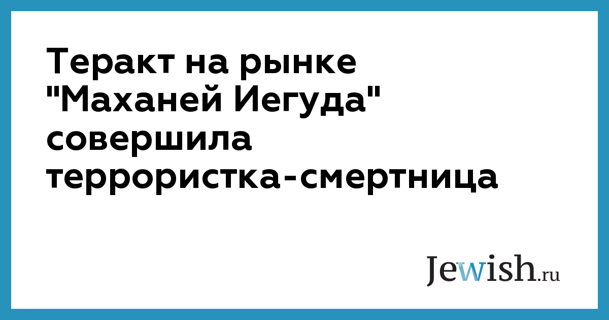 Теракт у входа в иерусалимский рынок "Маханей Иегуда" совершила палестинская террористка-смертница, сообщает Mignews.com.ua. Имя террористки — Нидаль Дарагме. Эту информацию подтверждает и начальник полицейского управления Иерусалима Мики Леви, и палестинские источники. По предварительным данным, террористка прибыла в Иерусалим из Дженина. По другим сведениям, она прибыла из Хеврона. В результате теракта в Иерусалиме по последним денным погибли шесть человек, около 50 получили ранения. Напомним, что трагедия произошла в прошлую пятницу в 16:15 по ближневосточному времени у самого входа в рынок "Маханей Иегуда". Террорист привел в действие мощное взрывное устройство на остановке общественного транспорта, расположенной при входе на рынок на улице Яффо. В этот время на рынке было много людей, делающих последние покупки к шабату.