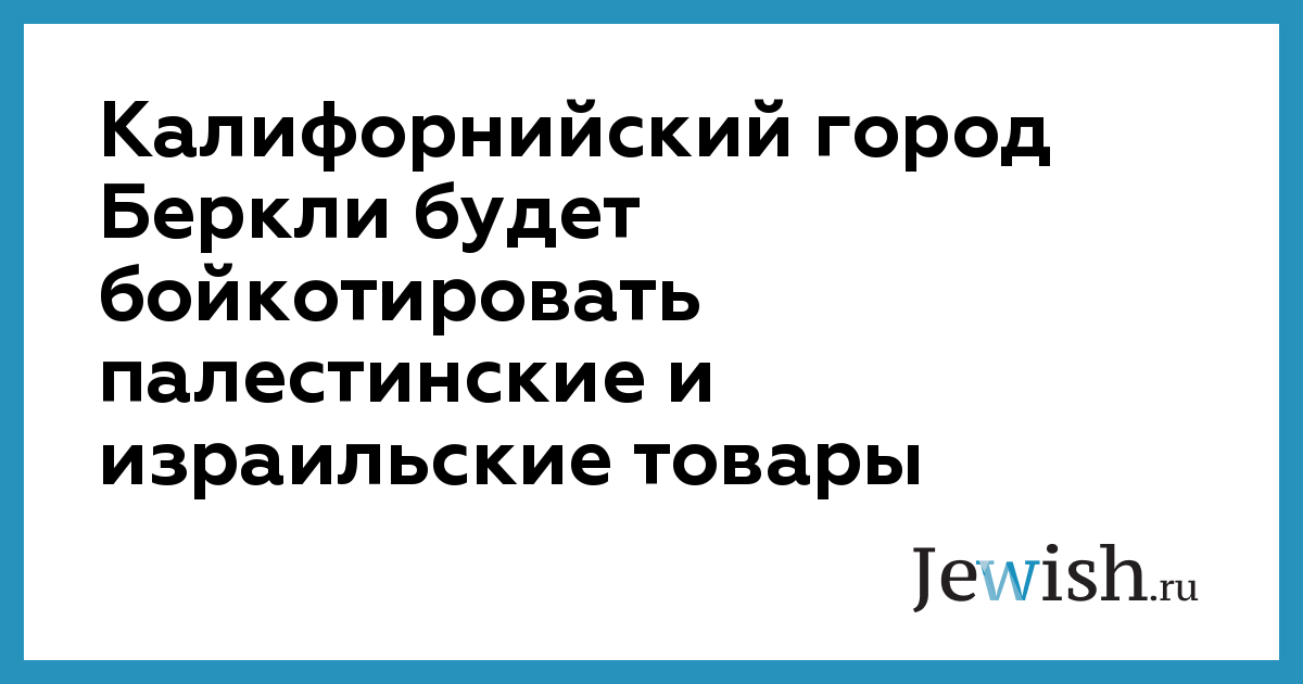 Мэрия города Беркли (Калифорния, США) на очередном заседании планирует рассмотреть вопрос о введении бойкота товаров, произведенных в Израиле и на территории палестинской автономии до тех пор, пока тем не наступит мир. Беркли, известный в США своими своеобразными демократическими традициями, с 1979 года ведет самостоятельную политику в отношении точек мира, в которых нарушаются права человека или допускаются другие несправедливости, затрагивающие судьбы людей. Так, в свое время Беркли проводил аналогичную политику в отношении Южной Африки, протестуя против апартеида. Беркли активно выступал и против властей Мьянмы, пока Верховный суд США специальным постановлением не запретил это, ссылаясь на то, что внешнюю политику США следует проводить от лица всего государства.