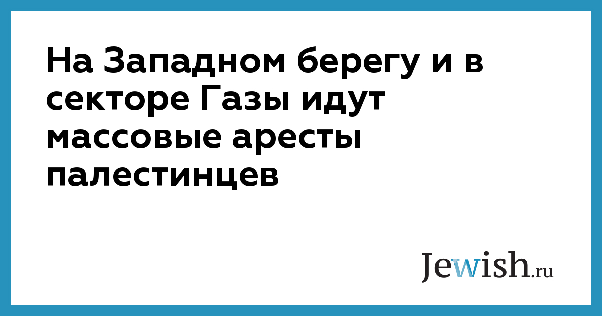 На Западном берегу и в секторе Газы идут массовые аресты палестинцев