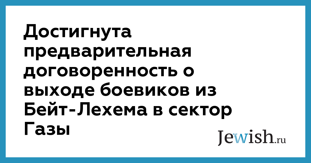 Достигнута предварительная договоренность о выходе боевиков из Бейт-Лехема в сектор Газы