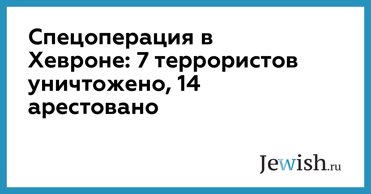 В ходе израильской военной операции в г.Хеврон на Западном берегу реки Иордан убиты семь палестинцев. По словам палестинских врачей, среди убитых — член палестинских сил безопасности и, по меньшей мере, три боевика. Вторжение началось сегодня приблизительно в 4:30 утра по местному времени (5:30 мск). Израильская армия при поддержке вертолетов и бронетехники вошла в город с четырех направлений и оккупировала более половины палестинской части Хеврона. Жителям города запрещено покидать свои дома. Сегодня же, как сообщает израильское информационное агентство "Курсор", во время рейда в район палестинского селения Туфах, расположенного близ Хеврона, израильские военнослужащие задержали четырех разыскиваемых израильскими властями террористов. Кроме этого, по подозрению в участии в антиизраильской террористической деятельности задержаны еще 10 человек. Хеврон является единственным крупным палестинским населенным пунктом на Западном берегу реки Иордан, который с момента начала нынешней операции израильской армии пока избежал полномасштабных военных действий.