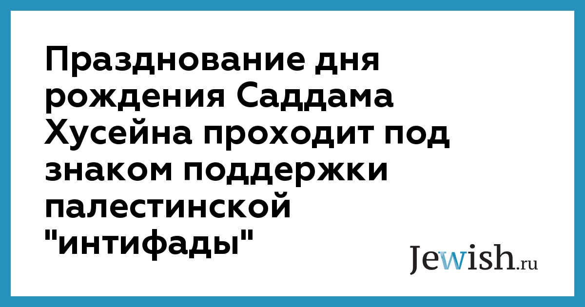 Всенародные празднования дня рождения Саддама Хусейна проводятся с 1985 года. В этом году они проходят под знаком поддержки борьбы палестинского народа за создание независимого государства. В демонстрации в Тикрите приняли участие 50 девушек с черными масками на лицах и картонными мечами в руках. "Мы символизируем бойцов, которые жертвуют собой", — сказала 15-летняя Нур Абдель-Латиф корреспонденту агентства Рейтер, имея в виду палестинских бомбистов-самоубийц. Ранее в интервью саудовскому телевидению Таха Яссин Рамадан сказал, что Саддам попросил уменьшить масштаб празднеств в знак скорби по палестинцам, погибшим в недавних столкновениях с израильской армией.