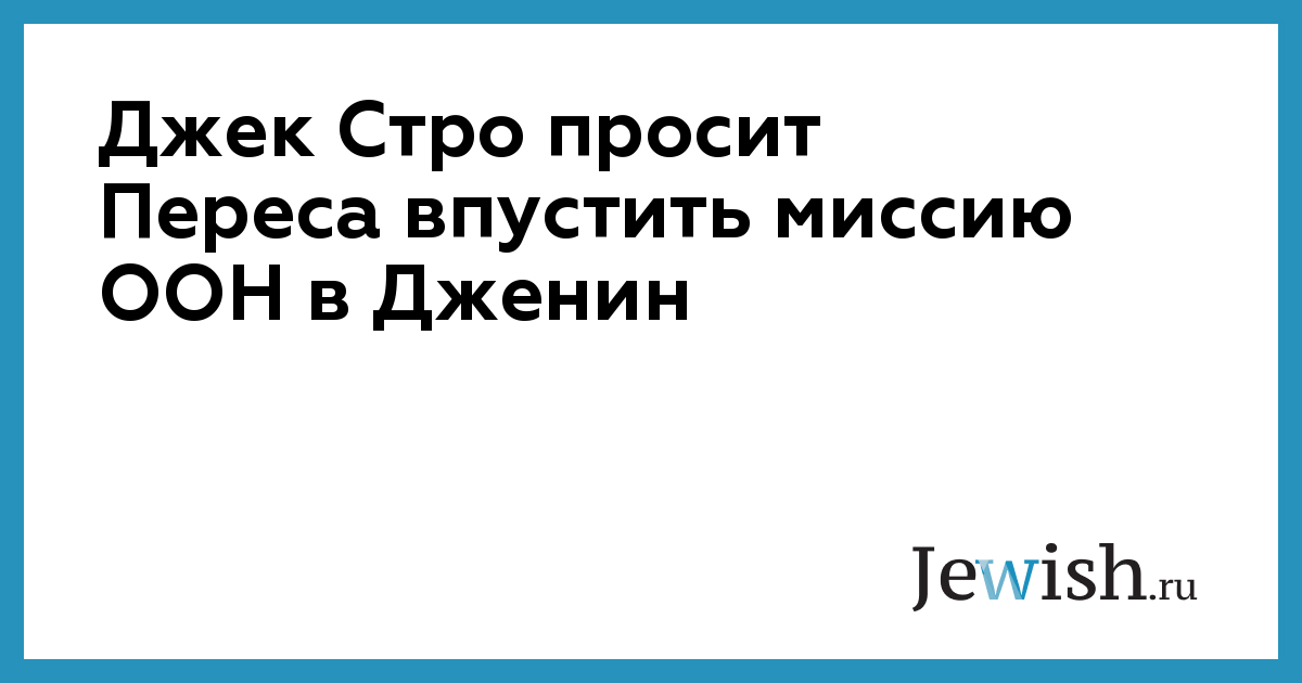 Джек Стро просит Переса впустить миссию ООН в Дженин