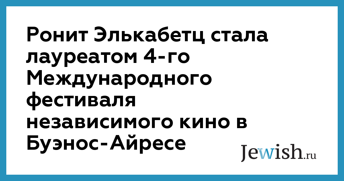Ронит Элькабетц стала лауреатом 4-го Международного фестиваля независимого кино в Буэнос-Айресе