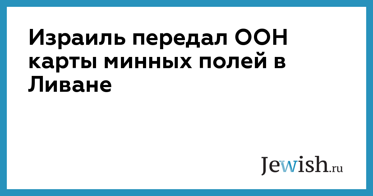 Израиль передал миротворческим силам ООН дополнительные карты минных полей на юге Ливана, оставшихся после вывода оттуда израильских войск в мае 2000 года. Об этом в среду, 1 мая, сообщил командующий миротворческими силами ООН на юге Ливана /ЮНИФИЛ/ генерал Лалит Теуари.