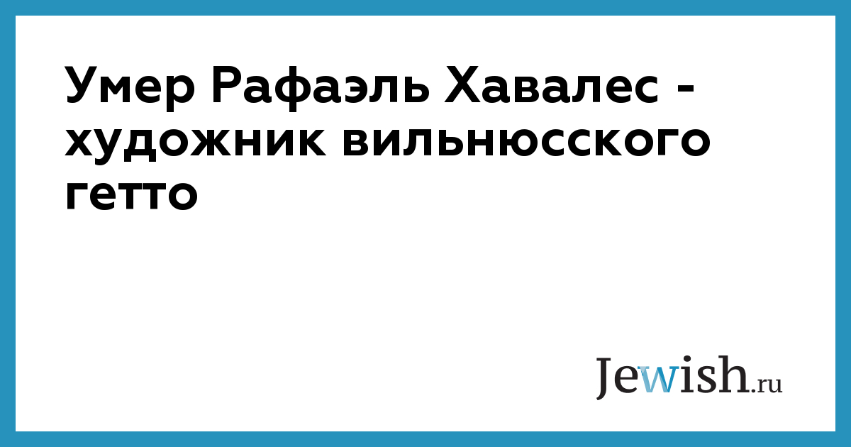 В Париже около месяца назад скончался в возрасте 89 лет Рафаэль Хавалес — художник вильнюсского гетто. Уроженец Литвы, Хавалес уехал во Францию в 1969 году и с тех пор жил в Париже. Хавалес принадлежал к движению "Юнг Вильна" — группе писателей и художников, занимавшихся еврейским просвещением в Вильнюсе накануне Второй мировой войны. Попав в гетто, Хавалес смог запечатлеть жуткие картины гибели евреев, разрушения дома гаона из Вильны, синагоги и вывоза евреев из города.