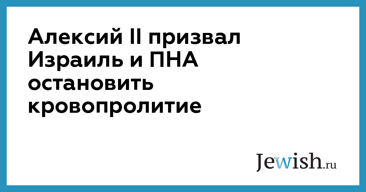 Патриарх Московский и всея Руси Алексий II призвал обе стороны ближневосточного конфликта остановить кровопролитие на Святой Земле, отказаться от любых силовых действий и отвести оттуда вооруженных людей.