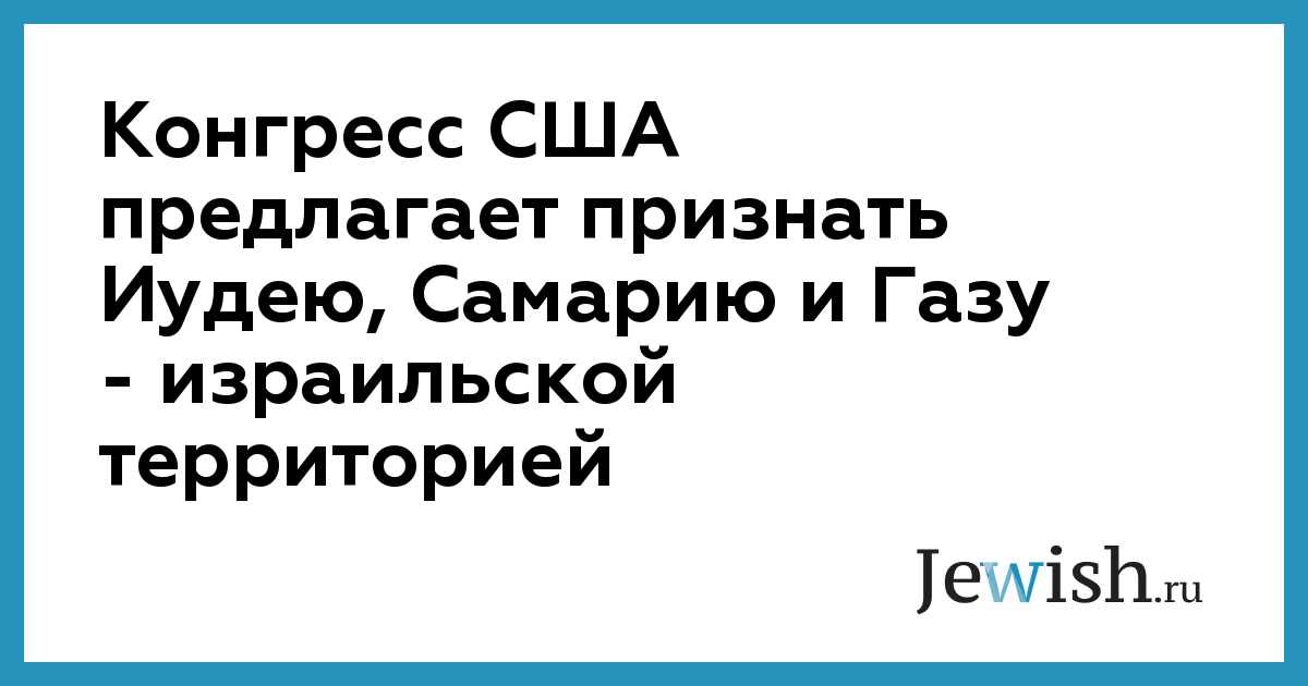По информации радиостанции "Седьмой Канал", сегодня в Конгрессе США обсуждался проект резолюции о признании всей территории Иудеи и Самарии неотъемлемой частью государства Израиль.