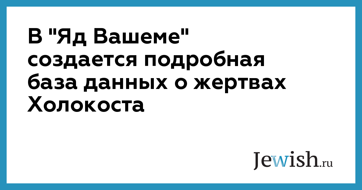 Администрация мемориального центра "Яд Вашем" объявила о работе над созданием подробнейшей базы данных, в которой будет содержаться информация о жертвах Холокоста. Исследования будут вестись совместно с Международной комиссией памяти жертв Холокоста (ICHEI).