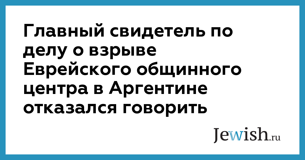 Главный свидетель по делу 20 человек, обвиняемых во взрыве Еврейский общинного центра в Буэнос-Айресе, отказывается отвечать на вопросы следователей. Карлос Альберто Телледин ( Сarlos Alberto Telleldin), эксперт по продаже транспортных средств, обвиняется в том, что не соглашается назвать имена людей, которым он продал вагон с 60 тоннами взрывчатки, использованными в теракте 1994 года, во время которого 85 человек было убито и 300-ранено.