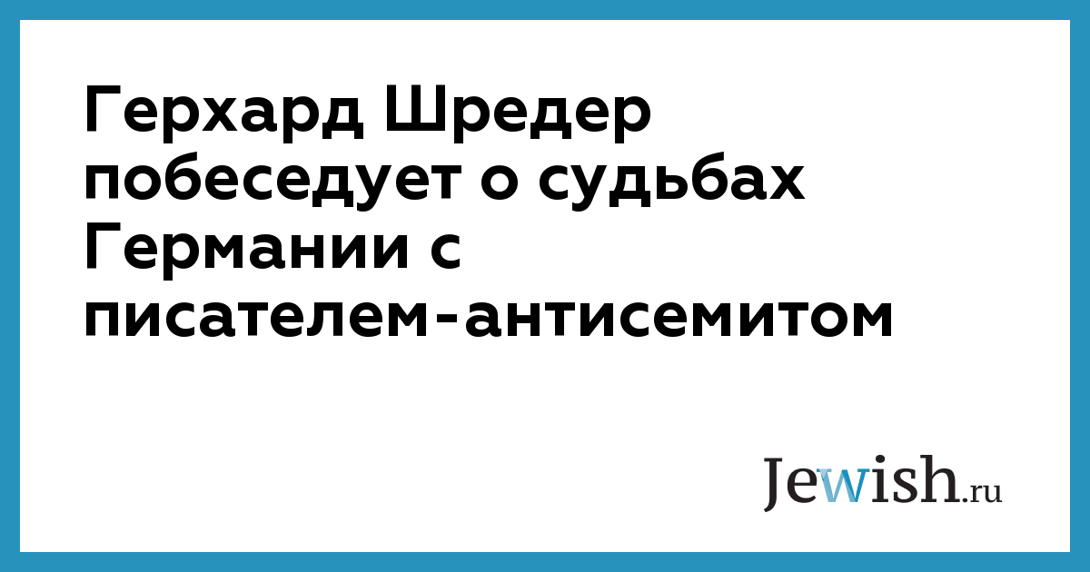 Канцлер Германии Герхард Шредер планирует обсудить проблемы национальной немецкой самоидентификации с писателем, который однажды высказал мнение, что пора прекратить использование темы Холокоста для того, чтобы в лишний раз покритиковать Германию. Центральный Совета евреев Германии обратился с заявлением в адрес Шредера, который собирается провести беседу с Мартином Вальзером в нынешнюю среду, в 57-ую годовщину поражения фашистской Германии. «Совершенно ясно, что предполагаемое событие привлечет к себе внимание правых националистов», — сказал Михаэль Фридман, вице – президент Совета. Берлинская Ассоциация против антисемитизма и антисионизма, попросила Социал–демократическую партию, возглавляемую Шредером, отменить мероприятие, назвав его характер «скандальным» Эту скандальность усиливает и то, что встреча проводится при содействии журналиста Кристофа Дикмана, в прошлом ноябре опубликовавшем статью в газете "Ди Цайт", где он высказал провокационное предположение, что нацизм – это зеркальное отражение еврейской веры в свою избранность.