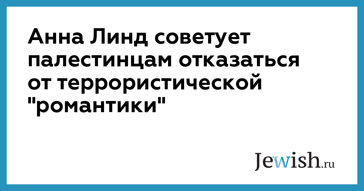 Долг всех палестинцев — сломать "гротесковую романтику", которая движет террористами-самоубийцами. Об этом заявила глава МИД Швеции Анна Линд, комментируя события в израильском городе Ришон-Лецион, где в результате теракта в среду погибли 17 человек, свыше 50 получили ранения. Анна Линд отметила, что "испытывает чувство отвращения и скорби после теракта в Ришон-Лецион". Она пояснила, что скорбит вместе с семьями и близкими невинных израильских жертв. Чувство же отвращения, по ее словам, вызвано тем, что террор самоубийц должен осуждаться. Причем не только с человеческой точки зрения, но и потому, что он стал "мотором в военной спирали". Глава шведского внешнеполитического ведомства оценила теракт в Ришон-Лецион как попытку свести "на нет" возможность мирных переговоров.