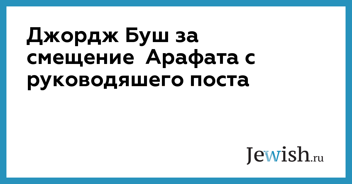 По словам Буша, палестинцы должны сместить "раиса" с руководящего поста и заменить его неким правителем или правительством. Буш считает вполне реальной возможность отстранения Арафата от власти и перевод его на роль "символа нации", не принимающего участия в политической жизни ПА.