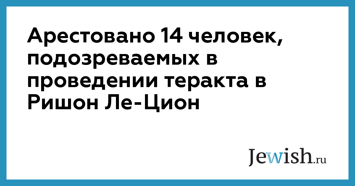 Силы безопасности Палестинской автономии арестовали 14 человек, подозреваемых в подготовке и проведении теракта в израильском городе Ришон Ле-Цион вчера поздно вечером. Об аресте сообщил посланник Евросоюза на Ближнем Востоке Мигель Анхель Моратинос.