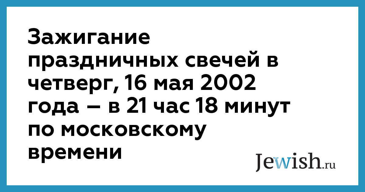 Зажигание праздничных свечей в четверг, 16 мая 2002 года – в 21 час 18 минут по московскому времени